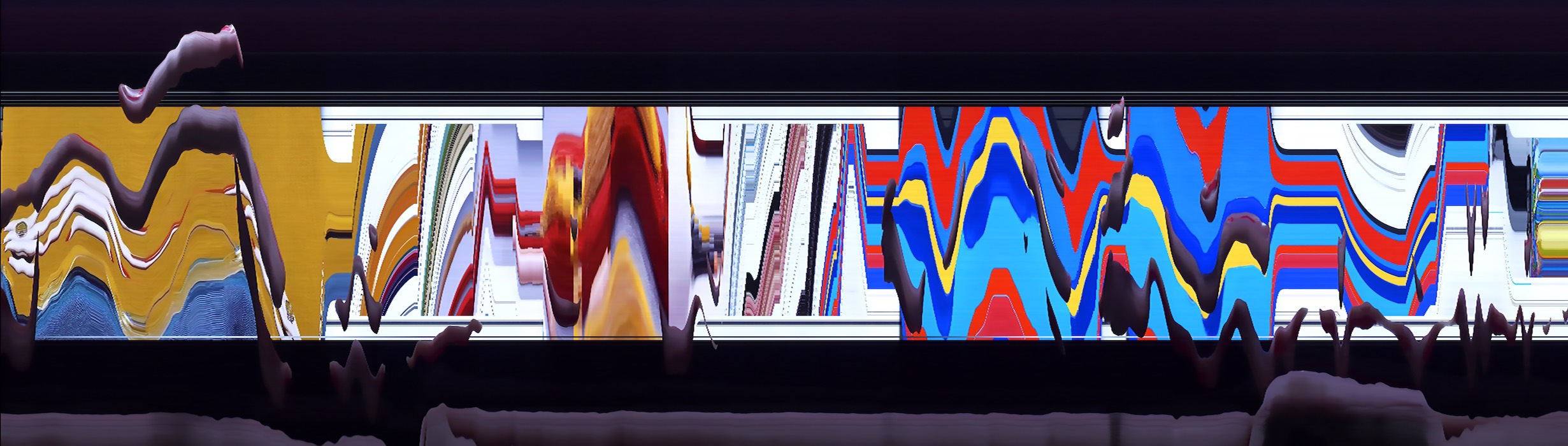 ‘DoomScroll’ was created using a process called slit-scan, a photographic method for visualising the passing of time across an image. Historically the film strip would be pulled through a special camera which instead of exposing a full image only exposes a thin slit of light. The film is then fed smoothly through the camera exposing the film to whatever action happens through that slit. One example it was historically used for was to capture horses passing a finishing line and to determine the winner. For this work I've written code to extract rows of pixels from video footage to modernise this method of recording time across a photograph.